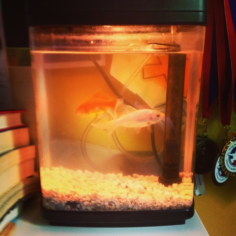 I wanted to make life better (for a while) and save your tiny world with clean water and a clear view of the moon and the sun, but I tried too hard and instead, turned the fishbowl inside out, causing your death with my stupid pet store hose and my giant, clumsy hands.