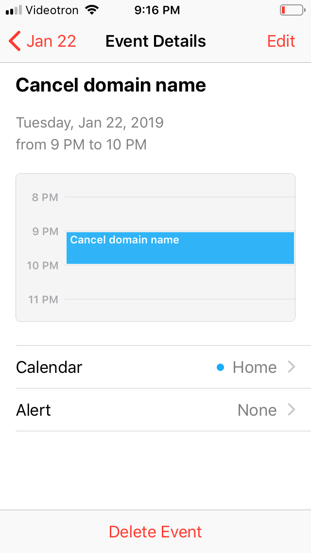 I’ve entered cancelling my domain name in my smart phone calendar. Five days seems so random.