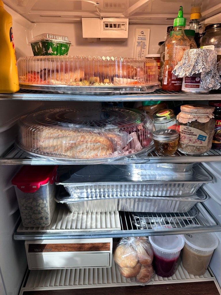 Like weddings though, there is only so much you can do in the days leading up to the event. Today’s check list included a couple of important tasks: 1 Pick up food from caterer. 2. Clean-up house. Item one was pretty straightforward. The caterer we use isn’t too far away and is uber organized herself. The only moment of panic was when we realized we couldn’t fit all the food in our retro 1988 fridge (still not dead). After chucking some expired condiments and moving all the cold drinks to a cooler, we managed to shove everything in. In a brief moment of madness, I half-wished we had a second fridge, but then I thought of my parents and the two refrigerators (at one point they had three) and humongous freezer we had to empty after my dad died three years ago and I came to my senses.